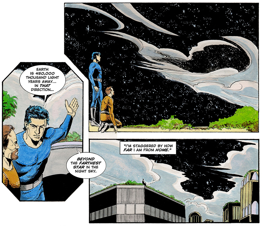 Tangor takes him to the building's roof, and shows him just how far away Earth really is.