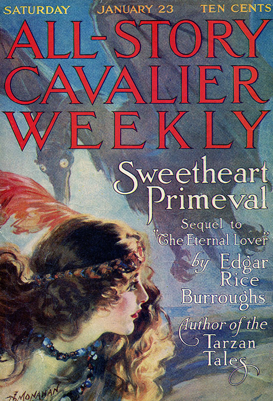 From the teen years to the early twenties of the 20th Century, Monahan's artwork graced the pulp covers featuring the stories of Edgar Rice Burroughs more than any other artist.